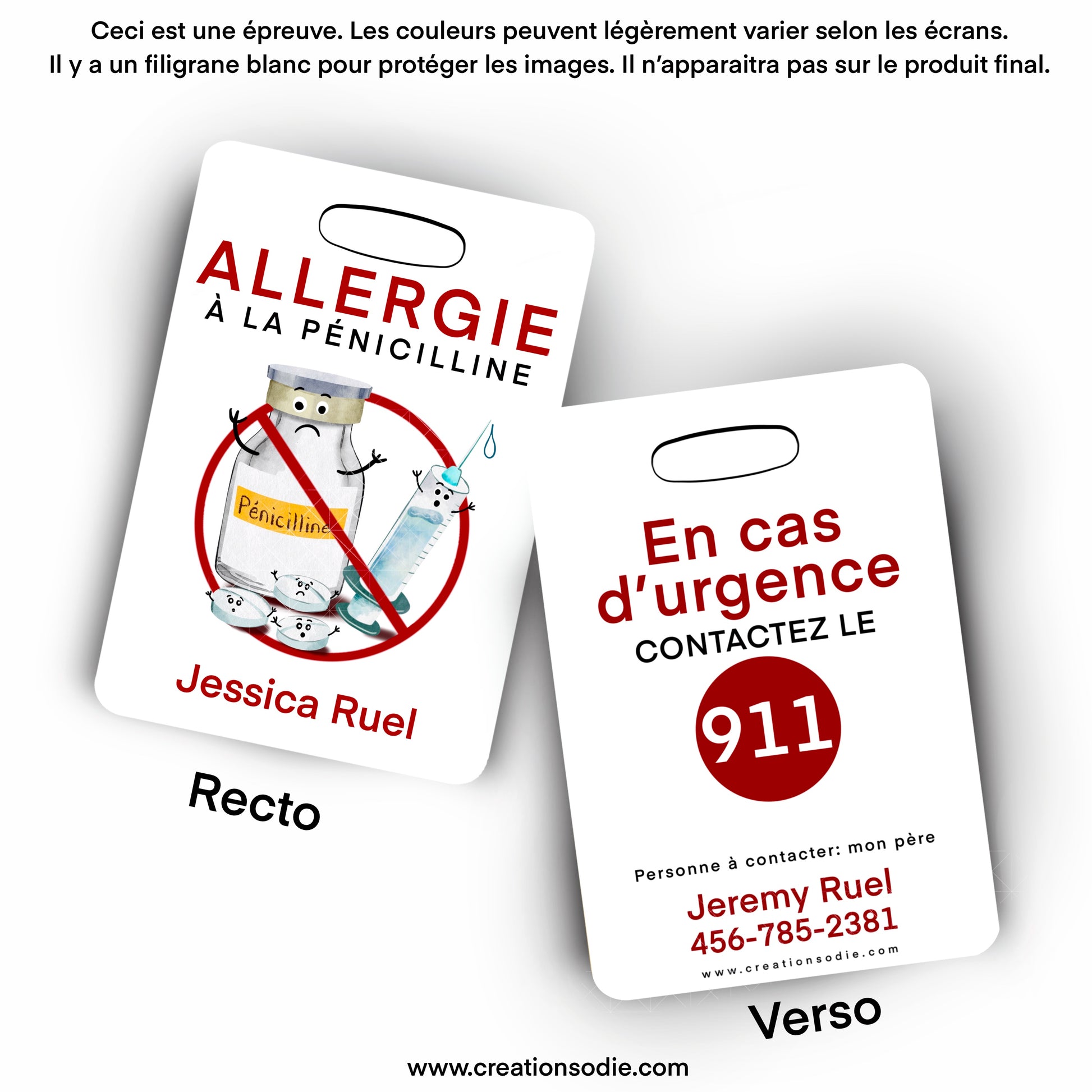 Accrochée à un sac à dos, un sac à lunch, une trousse ou un sac de voyage, elle attire l’attention grâce à ses couleurs visibles et son illustration douce, tout en transmettant une information essentielle en un seul coup d’œil.